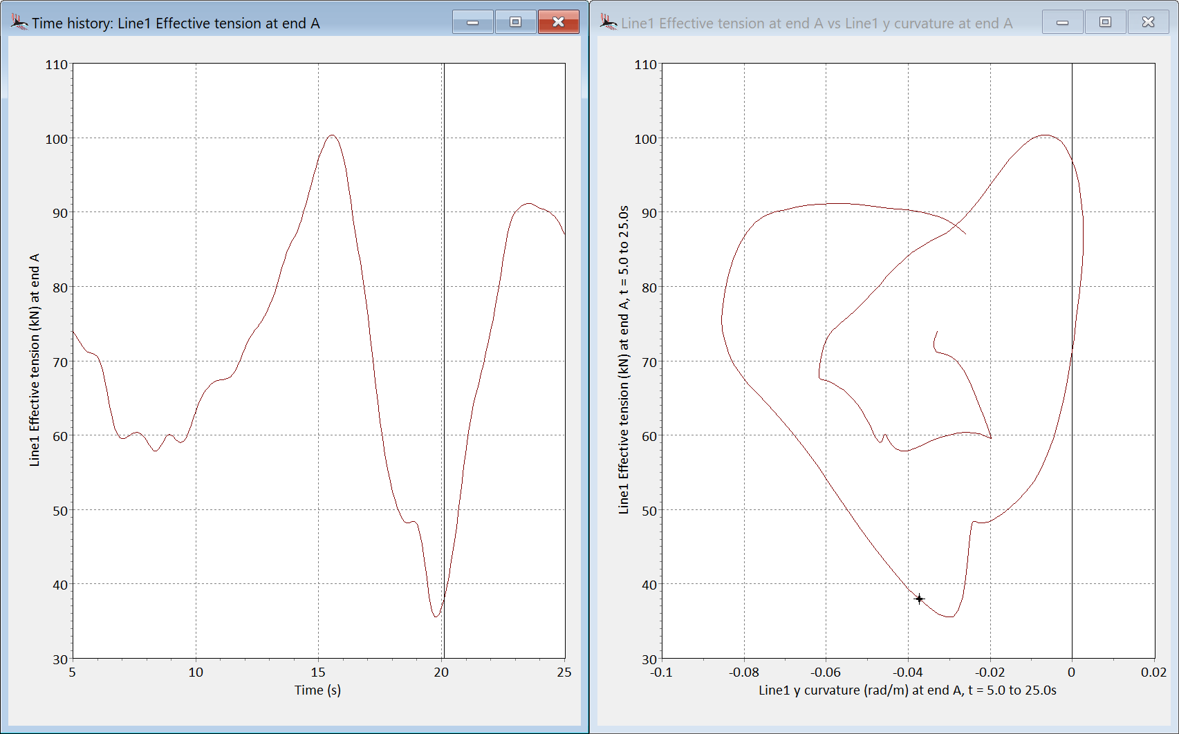 The replay time indicator on a time history graph can be directly manipulated using the mouse. With the CTRL key pressed you simply click on a time history graph and the indicator moves to where you have clicked. Any open 3D views are updated to show the new replay time. Similarly, with the CTRL key pressed you can click and then drag the indicator. This direct manipulation of the replay time indicator is designed to help understand and visualise how your model is behaving at key moments of the simulation.