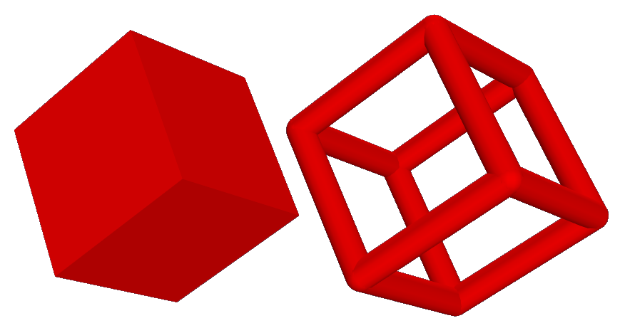 Figure: | Wire frames with different edge diameter. A value of ~ is used for the wire frame on the left and a value of 1 for the wire frame on the right. |