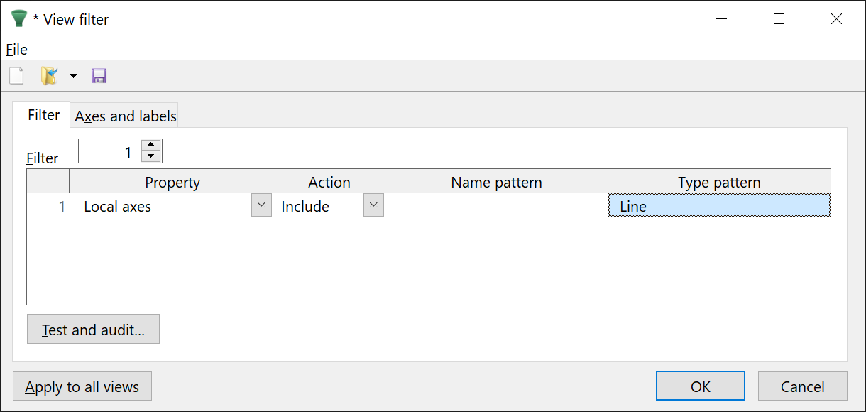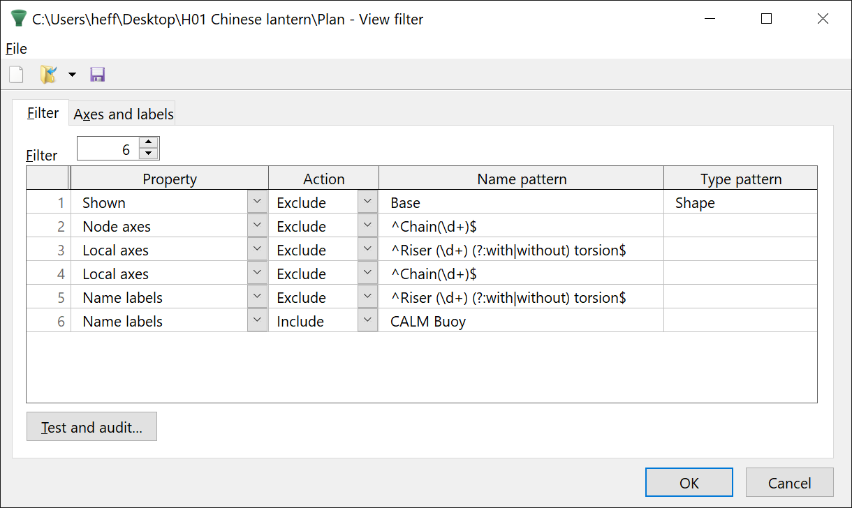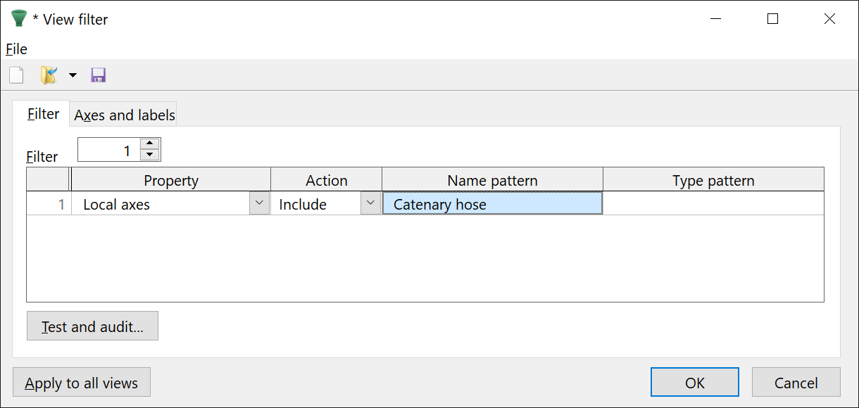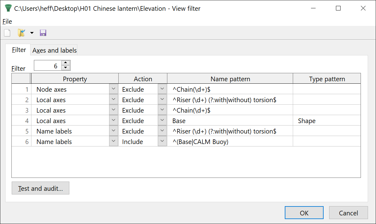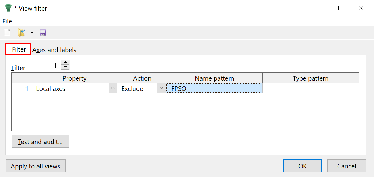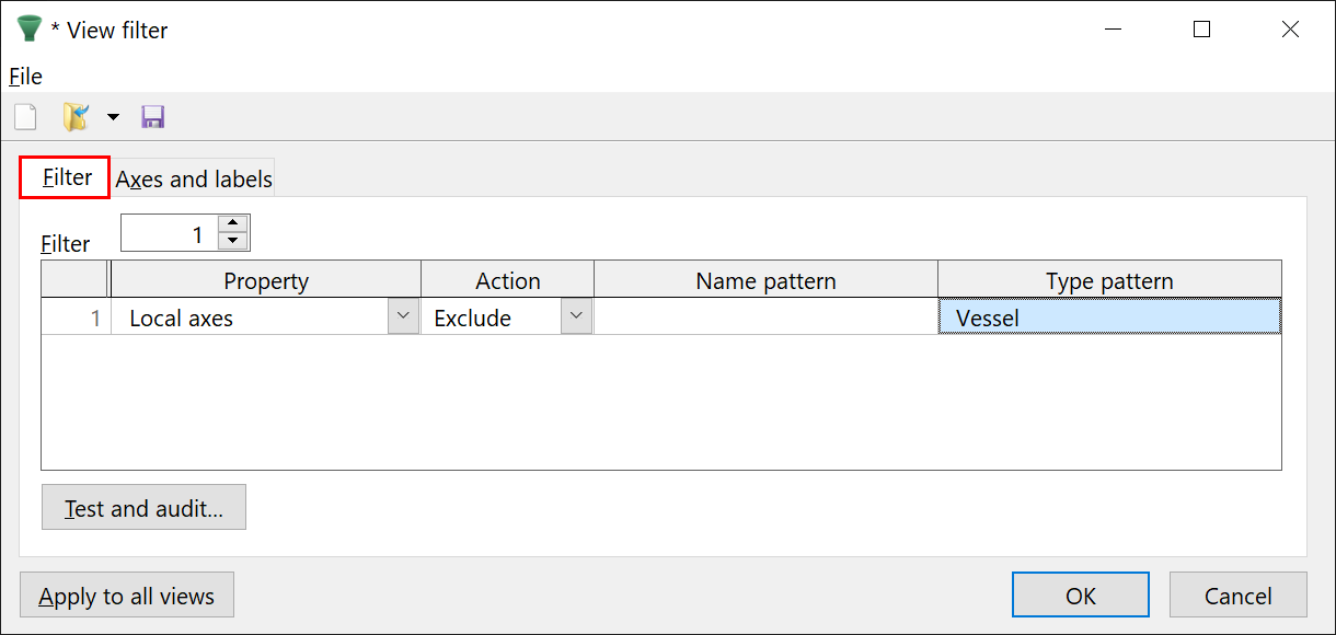 Now we can add a filter to exclude the local axes for the vessel. Once again we are faced with two paths to doing this, as we can either apply this based on the object type or the object name: