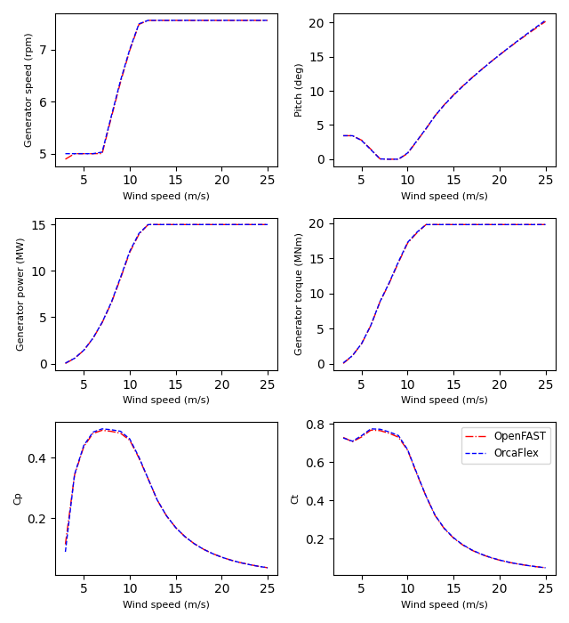 Overall, we have found the results to be in very close agreement, supporting both the validity of the updated OrcaFlex RWT model and consistency across the two aeroelastic codes. Below are some select results from the validation report.