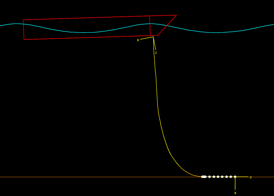 In previous versions of OrcaFlex, all of the options we are working with here would apply to all views. However, with filters we can now set these on a per-view basis, so the bases are hidden in plan but not elevation. The final result is clearer: