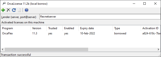 To borrow a license, you will need to run a specific version of OrcaLicense which permits borrowing. Your license administrator will decide whether or not to make this available to you. Run this OrcaLicense (note the title bar indicates that this is the version for borrowing) and specify the port and address of the lending server. This can be of the form port@server (e.g. 27000@flexnetserver or 27005@192.168.1.42) to use a specific port number, or server (e.g. flexnetserver or 192.168.1.42) to search each of the default ports.