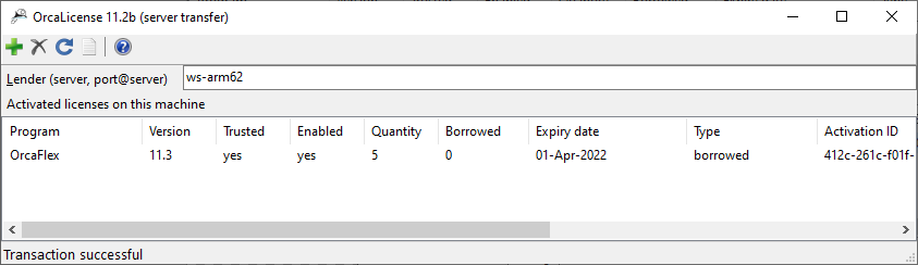 To transfer a license, you need to run the server transfer edition of OrcaLicense. Run this OrcaLicense (note the title bar indicates that this is the version for server transfer) and specify the port and address of the lending server. This can be of the form port@server (e.g. 27000@flexnetserver or 27005@192.168.1.42) to use a specific port number, or server (e.g. flexnetserver or 192.168.1.42) to search each of the default ports.