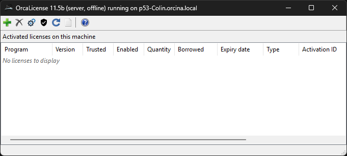 Once OrcaLicense is opened in offline mode, licenses are activated from the
