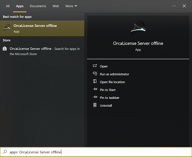 If the start menu entry is not present for you, it is also possible to open OrcaLicense in offline mode by supplying a -offline command line argument to program start up:
